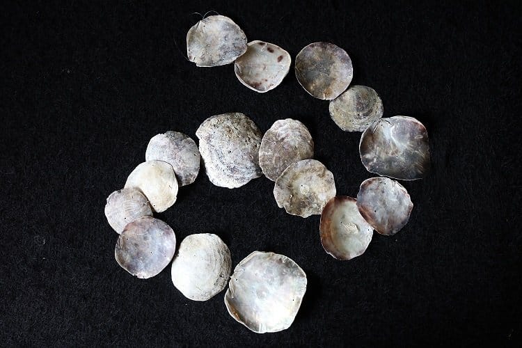 Mooie decoratieve streng met grote donkere schelpen